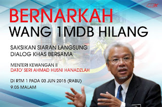 He used the 45 minutes program to explain issues and deny allegations raised by the pro-opposition online media and social media. More important Husni stressed that 1MDB has to address the RM42 billion debt. If not, it is the government that has to bear the debt burden and that could stiffle the budget for RMK 11.