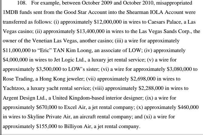 It is only the assets of Jho Loh, Riza Aziz, Khadem Al Qudaisi and Mohamed Al Hussainy are mentioned by the complainant. The filing by US Attorney General on behalf of the Department of Justice (DOJ) to the court is based on complains made by a certain party.