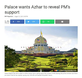 In the meeting, Mahiaddin also refused Agong's request to hold a vote of no confidence immediately and insisted it be done September 15th.